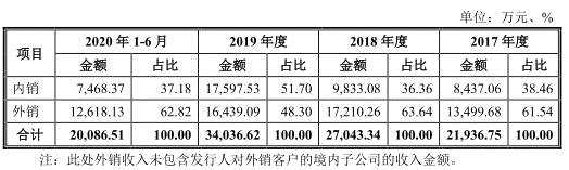 2020年上半年,公司外銷毛利率降幅較大,報告期內(nèi),公司外銷毛利率分別為31.09%、36.05%、40.39%、26.12%。