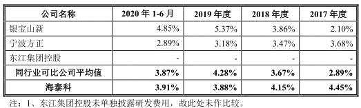 2017年至2020年1-6月,海泰科研發(fā)費用分別為986.80萬元、1129.40萬元、1327.67萬元、786.36萬元。