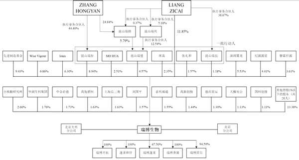 除了上述股東,其他持有瑞博生物5%以上股份的股東包括先進(jìn)制造基金、Wise Vigour、Ionis、深圳翼龍。此外,磐霖仟源、磐霖盛暉、上海磐隴和磐霖鴻裕也合計(jì)持有瑞博生物5.60%的股份。公司股權(quán)結(jié)構(gòu)圖如下: