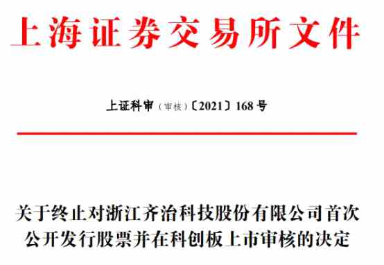 2021年3月11日,齊治科技保薦人招商證券股份有限公司向上交所提交了《關(guān)于撤回浙江齊治科技股份有限公司首次公開發(fā)行股票并在科創(chuàng)板上市申請文件的申請》(招證發(fā)[2021]121號),2021年3月11日,齊治科技向上交所提交了《浙江齊治科技股份有限公司關(guān)于撤回首次公開發(fā)行股票并在科創(chuàng)板上市申請文件的申請》(齊治[2021]第10號),申請撤回申請文件。根據(jù)《上海證券交易所科創(chuàng)板股票發(fā)行上市審核規(guī)則》第六十七條的有關(guān)規(guī)定,上交所決定終止對齊治科技首次公開發(fā)行股票并在科創(chuàng)板上市的審核。