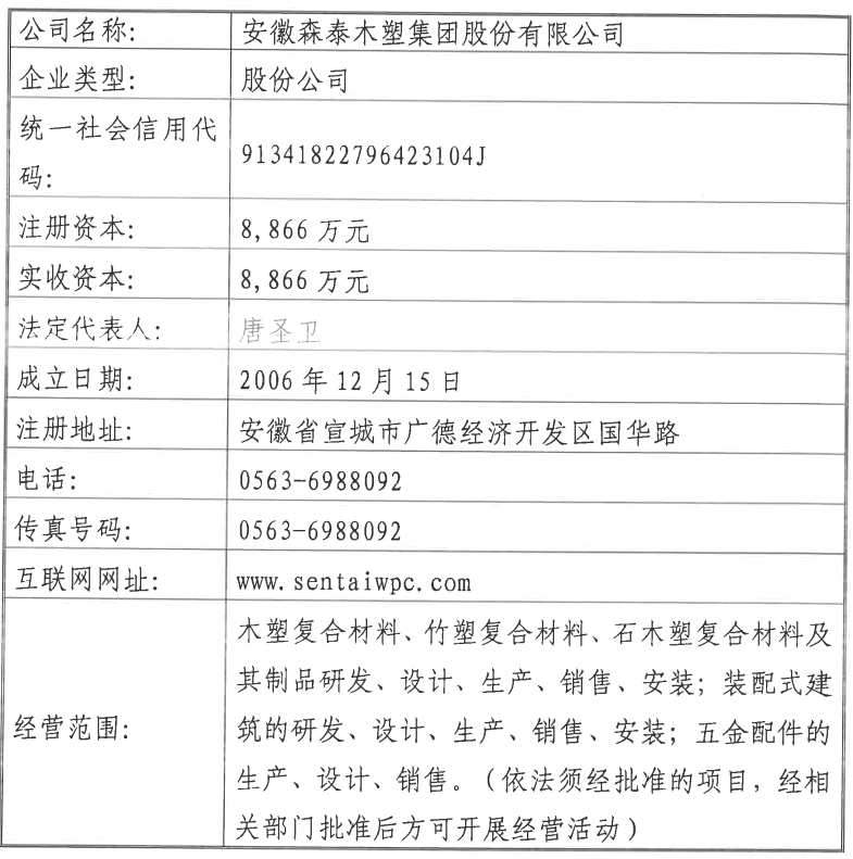 3月22日,資本邦了解到,安徽森泰木塑集團股份有限公司(以下簡稱:森泰股份)擬申請首次公開發(fā)行股票并上市。公司聘請民生證券股份有限公司擔任輔導機構,并于近日向安徽證監(jiān)局提交首次公開發(fā)行股票并上市的輔導備案申請報告。