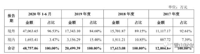 《雪山財(cái)金》發(fā)現(xiàn),博拓生物的收入9成都來自于境外。