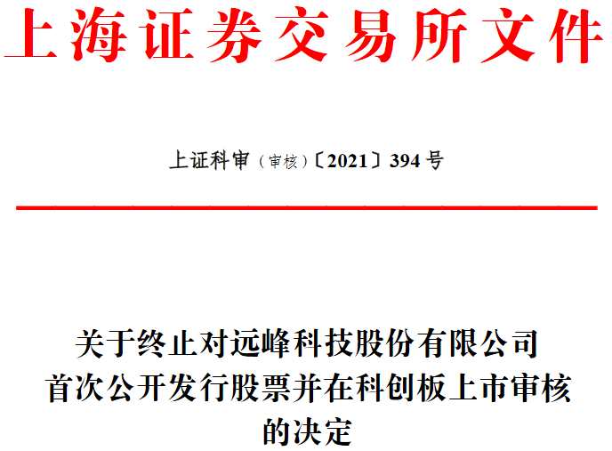 據(jù)上交所官網(wǎng)昨日消息,上交所決定終止對遠峰科技股份有限公司(簡稱“遠峰科技”)首次公開發(fā)行股票并在科創(chuàng)板上市審核。