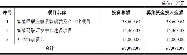 遠峰科技原擬公開發(fā)行股票數(shù)量不超過2200萬股,占發(fā)行后總股本的比例不低于25%。遠峰科技原擬募集資金6.80億元,擬分別用于智能網(wǎng)聯(lián)座艙系統(tǒng)研發(fā)及產(chǎn)業(yè)化項目、智能駕駛研發(fā)中心建設項目和補充流動資金。