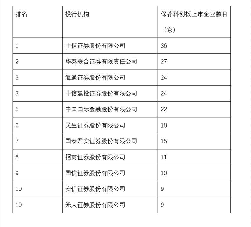 科創(chuàng)板兩周年投行保薦成績前十名: