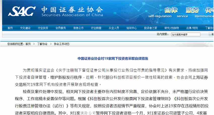 對19家網(wǎng)下投資者采取自律措施
