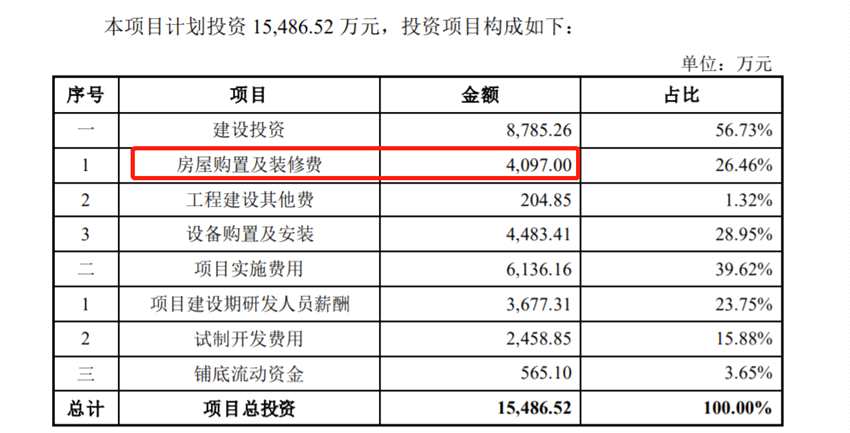 房屋購(gòu)置費(fèi)2.33億占總募集金額比例高達(dá)36%