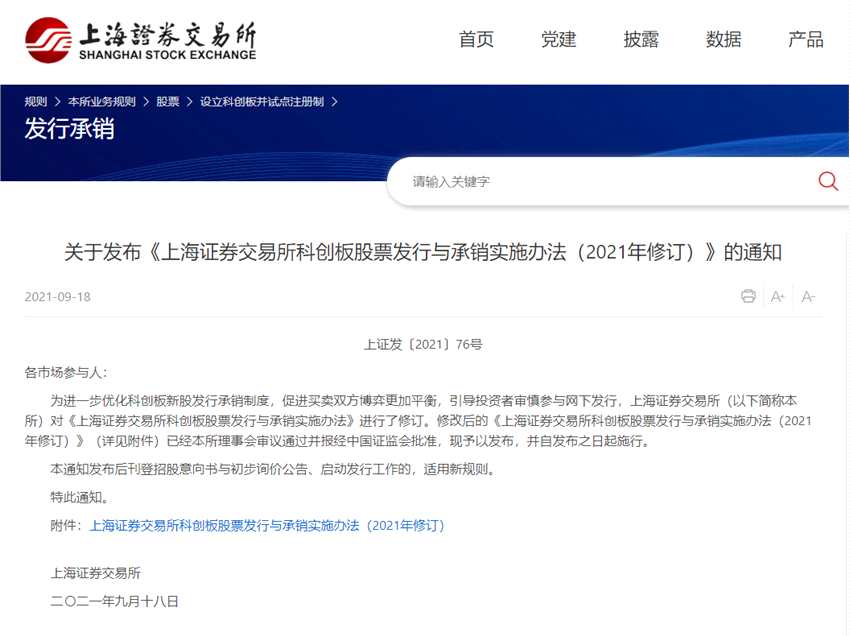 財(cái)聯(lián)社9月18日上交所發(fā)布《上海證券交易所科創(chuàng)板股票發(fā)行與承銷實(shí)施辦法(2021年修訂)》的通知。本次修訂主要包括4個(gè)方面內(nèi)容:一是最高報(bào)價(jià)剔除比例由“不低于10%”調(diào)整為“不超過(guò)3%”。二是明確初步詢價(jià)結(jié)束后如確定的發(fā)行價(jià)格超過(guò)網(wǎng)下投資者報(bào)價(jià)平均水平的,僅需在申購(gòu)前發(fā)布1次投資風(fēng)險(xiǎn)特別公告,無(wú)需采取延遲申購(gòu)安排。三是對(duì)于定價(jià)不在投價(jià)報(bào)告估值區(qū)間范圍內(nèi)的,取消發(fā)行人和主承銷商應(yīng)當(dāng)出具說(shuō)明的要求。四是強(qiáng)化報(bào)價(jià)行為監(jiān)管,進(jìn)一步明確網(wǎng)下投資者參與新股報(bào)價(jià)要求,并將可能出現(xiàn)的違規(guī)情形納入自律監(jiān)管范圍。