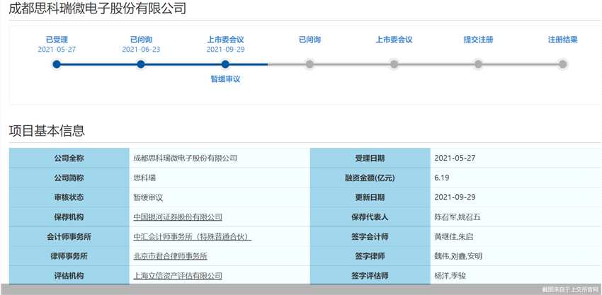 摘要: 在闖關(guān)科創(chuàng)板的路上,是否符合科創(chuàng)板定位是成都思科瑞微電子股份有限公司(以下簡(jiǎn)稱“思科瑞”)繞不開的質(zhì)疑,在審核問詢中被多次提及。9月29日晚間,上交所官網(wǎng)披露消息顯示,思科瑞科創(chuàng)板IPO遭暫緩審議。