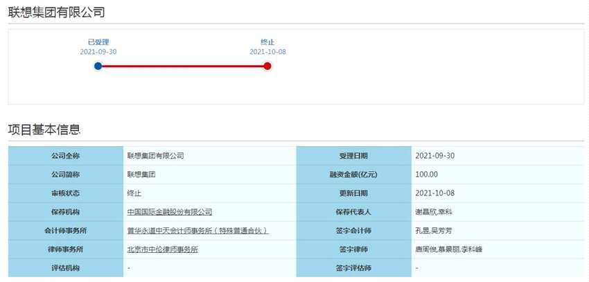 10月8日晚,上交所網(wǎng)站信息顯示:聯(lián)想集團科創(chuàng)板IPO審核狀態(tài)變更為“終止”。