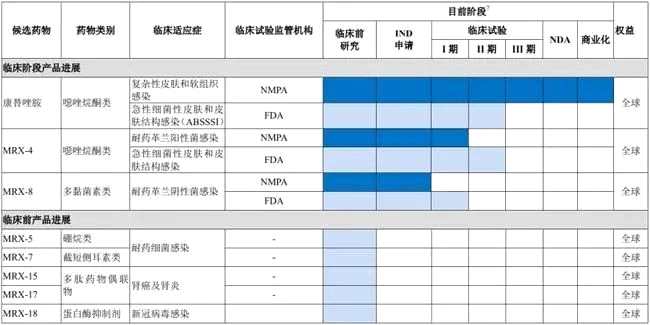 在產(chǎn)品研發(fā)情況方面,截至目前盟科藥業(yè)僅有一款產(chǎn)品進(jìn)入商業(yè)化階段,其余產(chǎn)品均處于臨床前研究或臨床試驗(yàn)階段。