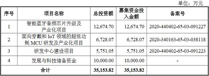 炬芯科技最終募集資金凈額比原計劃多8.43億元。炬芯科技于11月24日披露的招股說明書顯示,公司擬募集資金3.52億元,擬分別用于智能藍(lán)牙音頻芯片升級及產(chǎn)業(yè)化項目、面向穿戴和IoT領(lǐng)域的超低功耗MCU研發(fā)及產(chǎn)業(yè)化項目、研發(fā)中心建設(shè)項目、發(fā)展與科技儲備資金。