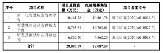 長威科技原擬在上交所科創(chuàng)板公開發(fā)行新股不超過1914萬股,且發(fā)行數(shù)量不低于公司股份總數(shù)的25%。長威科技原擬募集資金2.81億元,分別用于新一代智慧應(yīng)急管理平臺(tái)、智慧城市公共支撐能力平臺(tái)、研發(fā)及測試中心升級(jí)建設(shè)。
