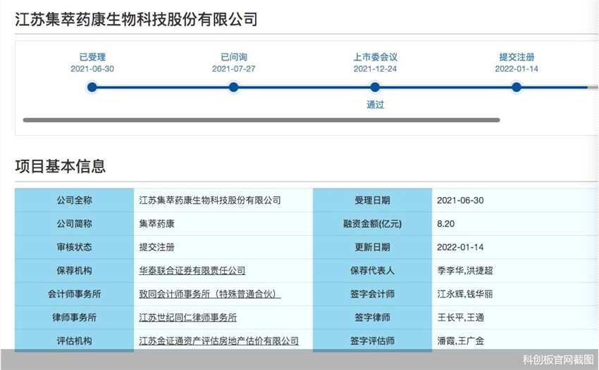 集萃藥康科創(chuàng)板上市已提交注冊