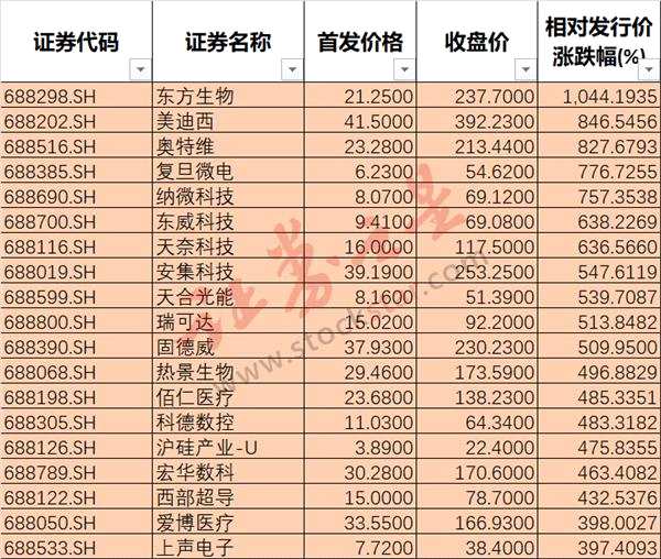 從投資角度看,科創(chuàng)板414家公司里,相對發(fā)行價漲幅超100%的有130家,占比31%。這比例還是不低的,有些優(yōu)質(zhì)公司漲幅有10倍、8倍,如東方生物、【美迪西(688202)、股吧】等