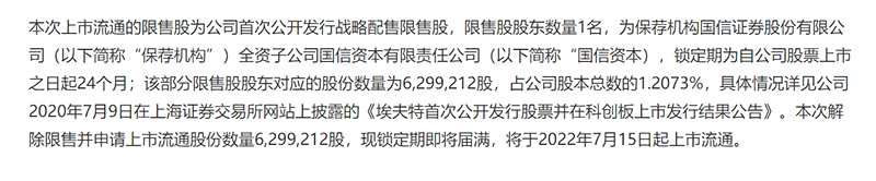 圖源:埃夫特-U關(guān)于首次公開發(fā)行戰(zhàn)略配售限售股上市流通的公告