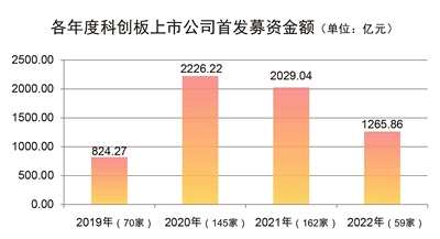 具體來看,2019年7月22日,科創(chuàng)板首批25家企業(yè)正式上市,截至2019年年底,科創(chuàng)板上市公司數(shù)量達(dá)70家,合計(jì)首發(fā)募集資金總額達(dá)824.27億元;截至2020年年底,科創(chuàng)板上市公司數(shù)量增至215家,2020年上市的145家公司首發(fā)募集資金總額為2226.22億元;截至2021年年底,科創(chuàng)板上市公司數(shù)量升至377家,2021年上市的162家公司首發(fā)募集資金總額為2029.04億元。