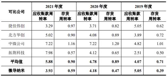 報告期內(nèi),公司應(yīng)收賬款周轉(zhuǎn)率分別為5.05次、4.18次、3.93次,同行業(yè)可比公司平均值分別為4.07次、4.78次、5.88次。