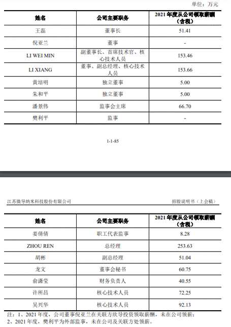 2021年,公司現(xiàn)任董事、監(jiān)事、高級管理人員及核心技術(shù)人員中,有3人從公司領(lǐng)取薪酬(含稅)超100萬元。其中副董事長、首席技術(shù)官、核心技術(shù)人員LI WEI MIN領(lǐng)取153.46萬元,董事、副總經(jīng)理、核心技術(shù)人員LI XIANG領(lǐng)取153.66萬元,總經(jīng)理ZHOU REN領(lǐng)取253.63萬元。