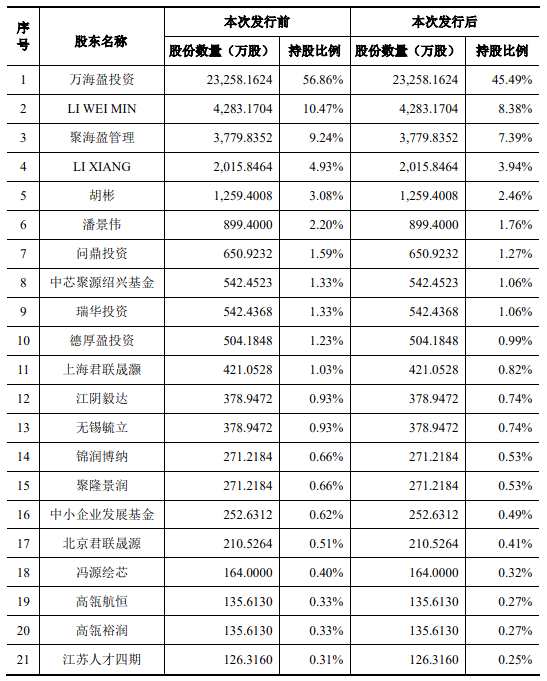 據(jù)微導(dǎo)納米招股書披露,萬海盈投資直接持有公司23,258.1624萬股股份,占公司總股本的比例為56.86%,為公司控股股東。王燕清、倪亞蘭、王磊組成的家族通過萬海盈投資、聚海盈管理、德厚盈投資間接控制公司67.34%的股份,同時王磊擔(dān)任公司董事長、倪亞蘭擔(dān)任公司董事。王燕清、倪亞蘭系夫妻關(guān)系,王磊系王燕清、倪亞蘭之子,王燕清、倪亞蘭、王磊系公司的實際控制人。