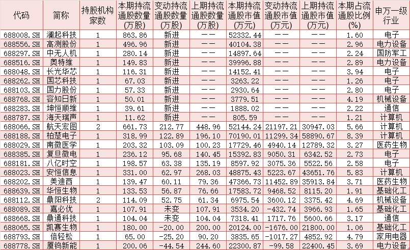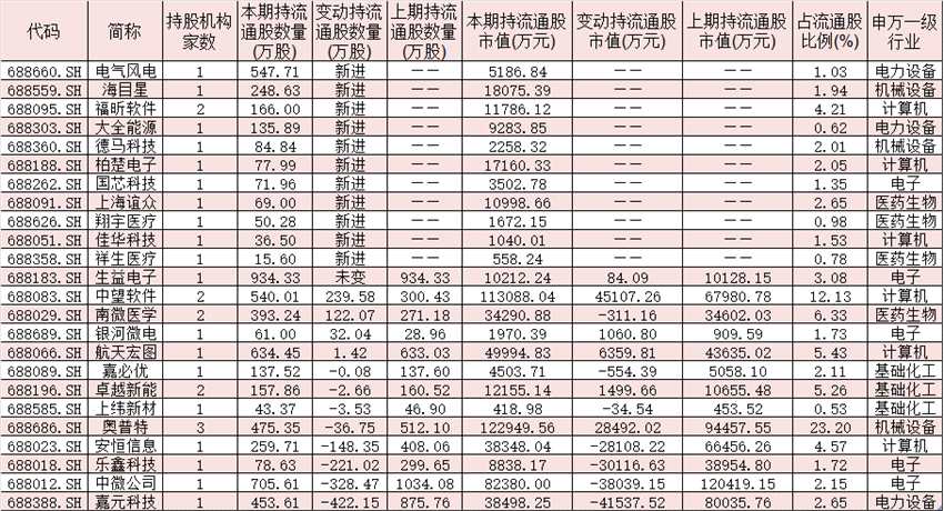 表1:今年二季度獲社保基金持倉(cāng)的科創(chuàng)板公司股票