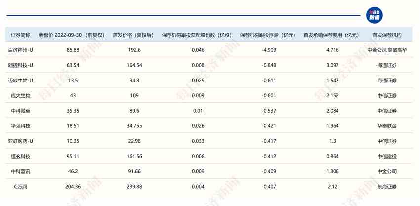 保薦機構科創(chuàng)板跟投浮虧比例達32.87%,百濟神州-U讓兩家保薦機構出現“倒貼”
