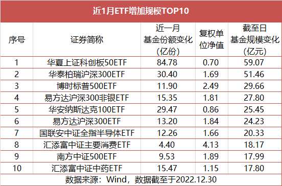 顯示,近1月被申購最多的ETF是科創(chuàng)50。