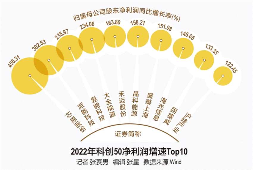 在板塊市值不斷壯大的背后,是一批業(yè)績優(yōu)、技術(shù)硬的上市公司作為支撐。2022年,頭部公司交上了一份份亮眼的成績單。目前,26家科創(chuàng)50成分股公司已披露年報,結(jié)合前期業(yè)績快報情況,科創(chuàng)50成分股公司2022年度合計實現(xiàn)營業(yè)收入6,113億元、凈利潤715億元,占板塊整體的比例分別為50%、62%,扛起板塊經(jīng)營成果的“半邊天”。