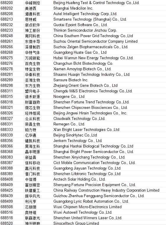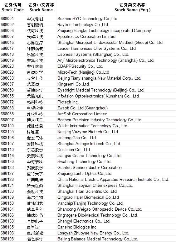 上證科創(chuàng)板100指數(shù)最新一期樣本如下: