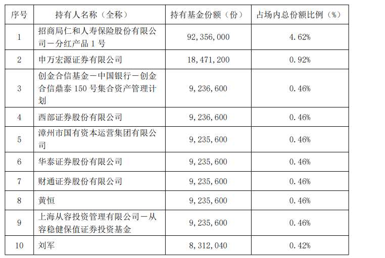 截至2月26日,博時(shí)科創(chuàng)綜指ETF第一大持有人為招商局仁和人壽保險(xiǎn)股份有限公司-分紅產(chǎn)品1號(hào),持有份額為9235.6萬(wàn)份。此外,博時(shí)科創(chuàng)綜指ETF前十名基金份額持有人還包括2位個(gè)人投資者,以及從容穩(wěn)健保值證券投資基金、漳州市國(guó)有資本運(yùn)營(yíng)集團(tuán)有限公司、創(chuàng)金合信鼎泰150號(hào)集合資產(chǎn)管理計(jì)劃等多類機(jī)構(gòu)投資者。