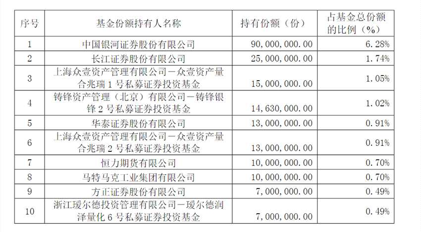 以南方科創(chuàng)綜指ETF為例,截至2月26日,前十名基金份額持有人包括中國(guó)銀河(601881)證券、長(zhǎng)江證券、眾壹資產(chǎn)量合兆瑞 1號(hào)私募證券投資基金、馬特馬克工業(yè)集團(tuán)有限公司等。