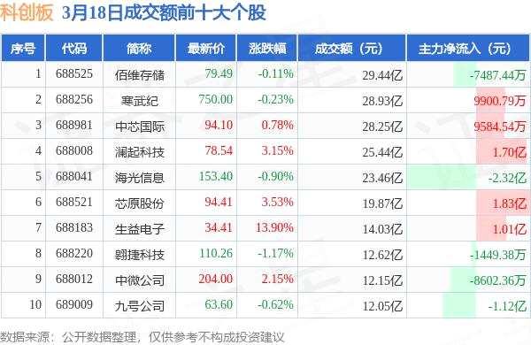 3月18日科創(chuàng)板成交額前十大個股,佰維存儲居首