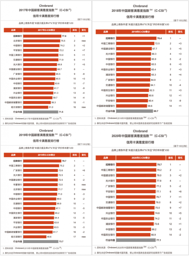 日前,品牌評級權(quán)威機(jī)構(gòu)Chnbrand發(fā)布2020年中國顧客滿意度指數(shù)(C-CSI)品牌排名和分析報(bào)告。招商銀行信用卡通過探索與用戶全新溝通方式、持續(xù)提升用戶體驗(yàn)及生活方式,連續(xù)第四年摘得C-CSI顧客最滿意信用卡品牌。