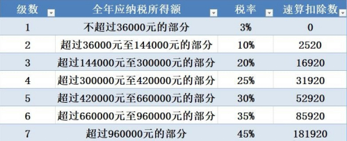 由于應(yīng)納稅所得額的改變,速算扣除數(shù)也發(fā)生了一定的變化,往年的速算扣除數(shù)都是按月計算的,從2019年開始,速算扣除數(shù)就要按年計算了,當(dāng)然我們也可以換算成每月的數(shù)額進(jìn)行計算。