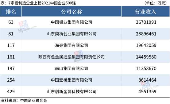 7家鋁相關(guān)企業(yè)上榜2021中國(guó)企業(yè)500強(qiáng)