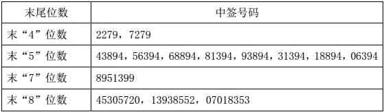 凡參與網上發(fā)行申購湘油泵A股股票的投資者持有的申購配號尾數與上述號碼相同的,則為中簽號碼。中簽號碼共有18207個,每個中簽號碼只能認購1000股湖南機油泵股份有限公司A股股票。