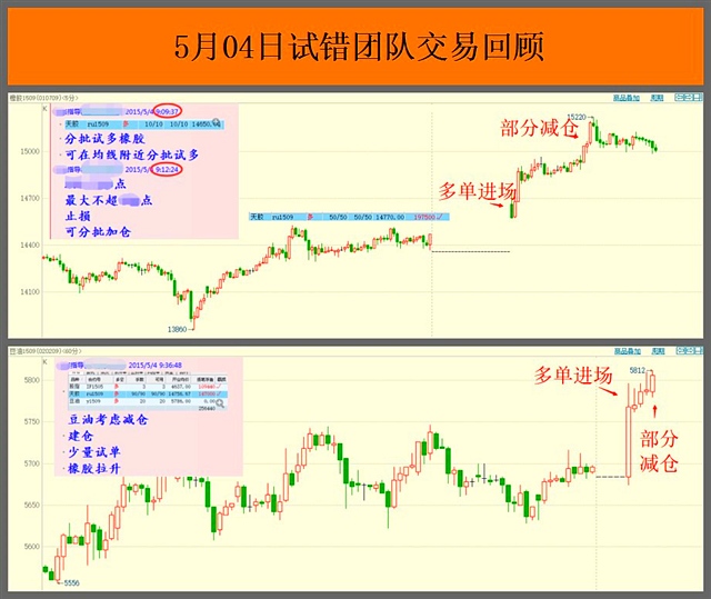 今天作為五一節(jié)后的第一個(gè)交易日,下單組早盤提示試多橡膠,橡膠繼續(xù)延續(xù)節(jié)前走勢,開倉即拉升,經(jīng)過1個(gè)多小時(shí)高位整理后,于上午11點(diǎn)20分左右大幅拉升,最高沖至漲停位置,逢高提示部分止盈。多頭趨較為強(qiáng)勁。9點(diǎn)36分提示試多豆油,尾盤小幅拉升后提示部分止盈后留趨勢單。上午10點(diǎn)09分左右,提示試多股指1506,盈利后尾盤留趨勢單。您還在等什么,快來加入我們體驗(yàn)快樂期貨~具體進(jìn)場點(diǎn)位請(qǐng)加入中糧期貨(博客,微博)試錯(cuò)交易QQ群:241515549