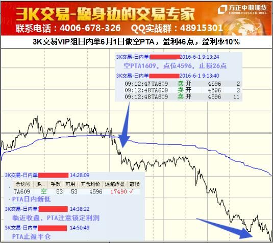 【3K交易】VIP組日內(nèi)空PTA,盈利46點(diǎn),盈利率10%