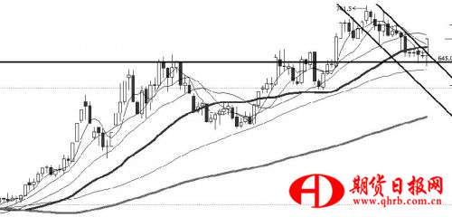 鐵礦石1705合約價格周一探底回升,增倉放量收復(fù)34日均線,并突破下跌通道上軌壓力。上周五夜盤價格最低跌至638元/噸附近,該位置是去年12月、今年1月高點(diǎn)位置,阻力變支撐后,多方趁機(jī)發(fā)力帶動市場做多人氣,放量中陽線一改往日下跌的頹勢。后市在收盤價不跌破670元/噸的前提下,可以逢回調(diào)適量參與多單,上方阻力位710元/噸。
