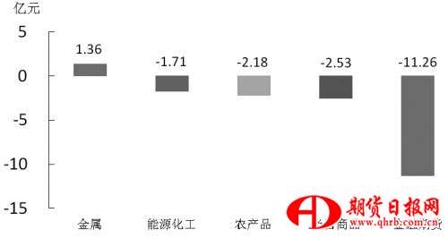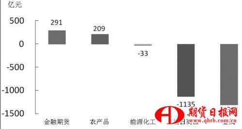 商品期貨成交額大幅縮減,期貨市場成交活躍度下降。資金流出金屬和能化板塊,小幅流入農(nóng)產(chǎn)品板塊,商品期貨資金總計流出約4.24億元。股指期貨下跌,成交活躍度提升。從盤面上看,有色品種走勢分化,鋅上漲1.89%、鉛下跌1.06%;黑色建材系,玻璃、焦炭漲幅逾1%,鐵礦石尾盤翻綠;農(nóng)產(chǎn)品普跌,雞蛋收跌2.14%,三大油脂等多品種跌幅超1%;能化品種甲醇與瀝青上漲,其余下跌。股指市場資金流出約4.36億元,振蕩偏弱運行。