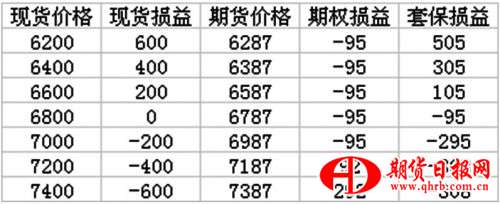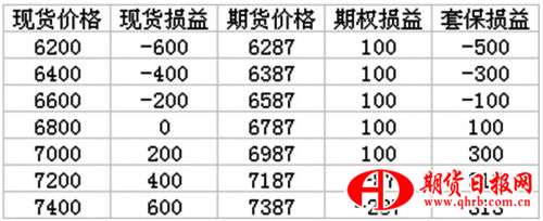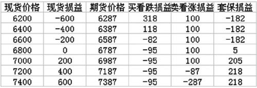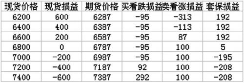 表為買入看漲期權(quán)套保損益(單位:元/噸)
