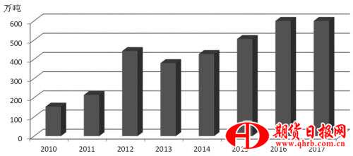 2016年,受厄爾尼諾氣候的影響,全球白糖減產(chǎn)嚴重。不過,由于天氣良好,全球白糖產(chǎn)量由2015/2016榨季的1.65億噸增長至2016/2017榨季的1.71億噸,增長幅度為0.3%。其中,產(chǎn)銷缺口由2015/2016榨季的743萬噸縮小至2016/2017榨季的333萬噸,跌幅為55%。