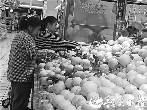 超市的工作人員告訴筆者,現(xiàn)在是水果大量上市的季節(jié),供應(yīng)充足,因此價(jià)格不會(huì)過高,與去年同期相比還有小幅下降。最近天氣干燥,水靈靈的水果讓人一看就有食欲,價(jià)格也合適,不少市民都買新鮮上市的水果嘗鮮,因此水果的銷量都很好,其中最受歡迎的還是橙子和橘子,有時(shí)一天能賣出上百箱。