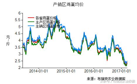 布瑞克監(jiān)測的現(xiàn)貨價(jià)格數(shù)據(jù)顯示:2017年2月,雞蛋現(xiàn)貨的全國均價(jià)為2.33元/斤,主產(chǎn)區(qū)均價(jià)為2.25元/斤,為2014年以來的歷史地位。雖然雞蛋價(jià)格處于歷史地位,且已經(jīng)震蕩了一個(gè)多月,但我們發(fā)現(xiàn)雞蛋現(xiàn)貨上漲壓力較大。