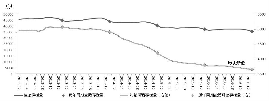 從下游需求來看,養(yǎng)殖業(yè)仍處于需求淡季:第一,生豬存欄量低下,養(yǎng)殖場補欄積極性遲緩。3月15日,農(nóng)業(yè)部公布了2月400個監(jiān)測縣的生豬存欄信息,全國生豬和能繁母豬存欄量再次下降。生豬存欄量較1月減少0.2%至3.56億頭,能繁母豬存欄量較1月減少0.5%至3633萬頭。第二,水產(chǎn)養(yǎng)殖尚未啟動,粕類終端需求恢復(fù)仍需時日。第三,受禽流感的影響,家禽存欄量也出現(xiàn)大幅減少。