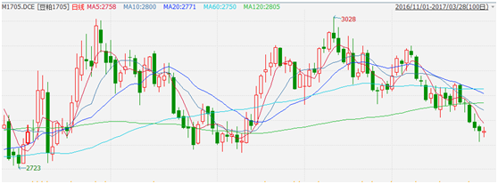 鑒于今年大量生產(chǎn)者種植面積的預(yù)期,新作物前景已經(jīng)看跌。我們通過下圖豆粕M1705主力合約近100日的走勢,可以發(fā)現(xiàn)現(xiàn)階段市場價格可以說已經(jīng)充分反映了市場的預(yù)期情況。因此,筆者預(yù)計在本次USDA報告日豆粕價格可能會有小幅度的下跌,而后幾日有所修復(fù),整體價格變動范圍并不會太大。