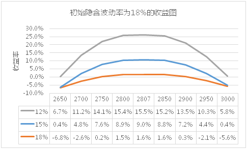 表3.2:隱含波動率為18%,且隱含波動率保持不變時的收益率測算