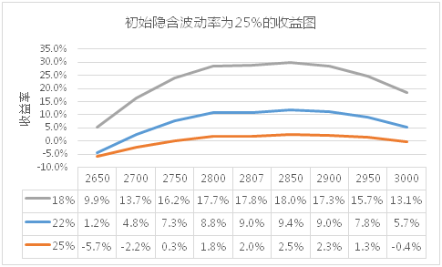 表3.3:隱含波動率為25%,且隱含波動率保持不變時的收益率測算