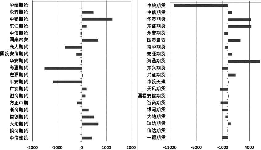 相反,海通期貨席位在減持1504張多單的同時(shí)大幅增持6001張空單,持倉由凈多轉(zhuǎn)為凈空3630張;中信期貨席位在減持53張多單的同時(shí)增持678張空單,凈空單增加至9335張;國投安信席位當(dāng)日也做出類似的減多、增空操作。以上數(shù)據(jù)顯示,這部分席位對(duì)后市較為悲觀。