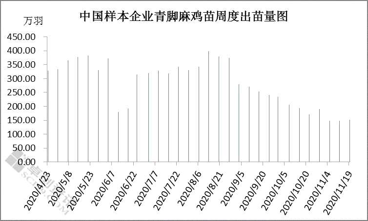 由上圖可以看出,在本月中上旬雞苗價(jià)格出現(xiàn)了上漲的行情,據(jù)卓創(chuàng)資訊數(shù)據(jù)統(tǒng)計(jì),雞苗價(jià)格由1.66元/羽漲至3.19元/羽,漲幅達(dá)92.17%。據(jù)卓創(chuàng)數(shù)據(jù)統(tǒng)計(jì),由于第三季度孵化場(chǎng)虧損嚴(yán)重,在8月下旬孵化場(chǎng)開始淘汰在產(chǎn)父母代種雞,致使種雞存欄量大幅下滑,部分地區(qū)種雞淘汰率高達(dá)50.00%以上,后期孵化場(chǎng)出苗量大幅減少,11月份雞苗供應(yīng)量較為緊張。從需求面來看,11月上旬毛雞價(jià)格上漲,雞苗市場(chǎng)受提振,且部分養(yǎng)殖戶開始補(bǔ)欄過年雞,苗市需求好轉(zhuǎn),供需雙面提振市場(chǎng),孵化場(chǎng)排苗加快,雞苗價(jià)格上漲明顯。但好景不長,在11月下旬雞苗市場(chǎng)頹勢(shì)顯現(xiàn),雞苗價(jià)格開始走下坡路,20日苗價(jià)已跌至3.04元/羽。